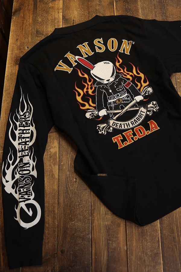 VANSON×CROWS×WORST 武装戦線 コラボ CRV-2313 天竺ロンTee デスラビット ブラック