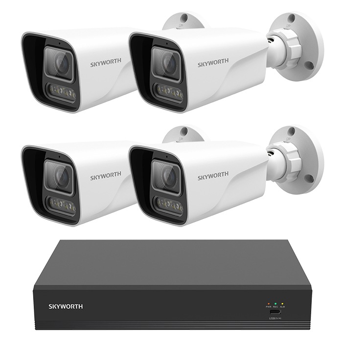 防犯カメラ4台 8チャンネルPOE録画機1台セット 4台500万画素 カラー超暗視 有線接続 増設可能 SKYWORTH