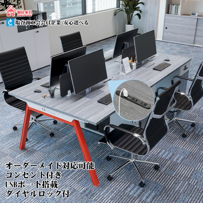 福居家具 自社産 法人様向け 4人用 1~3営業日発送 オフィステーブル 事務用 オフィスデスク ワークデスク パソコンデスク 通...