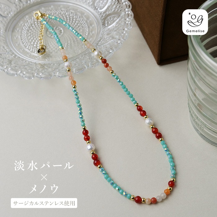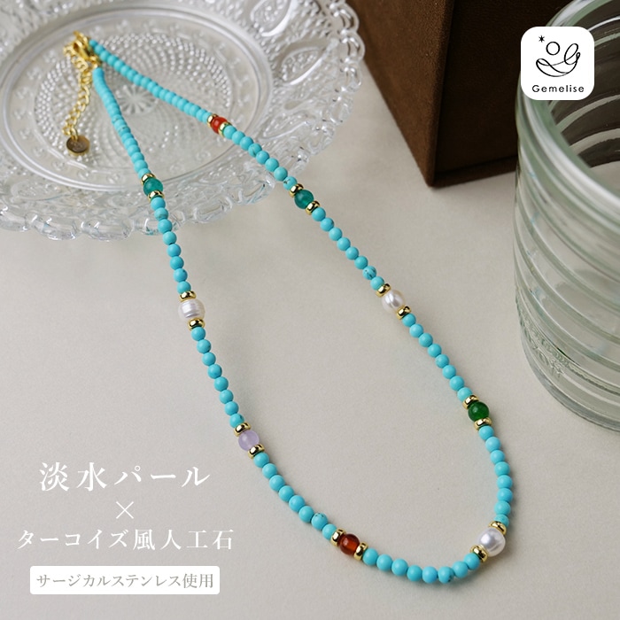 Gemelise ジェメリース 淡水パール×天然石(ターコイズ風人工石/メノウ)ネックレス 950399