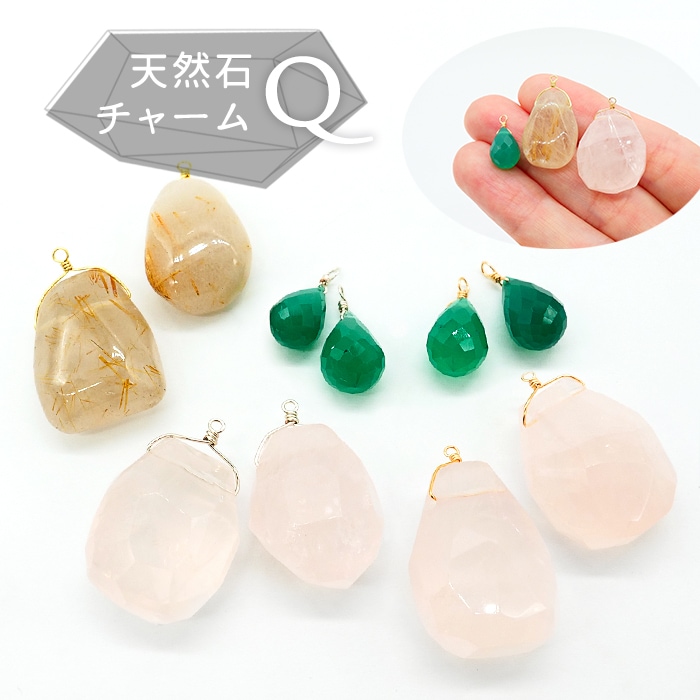 【17】天然石チャームQ 【マルカン取付サービスあり】シャンク巻き メガネ留め めがね留め ハンドメイド チャーム ピアスチャーム...