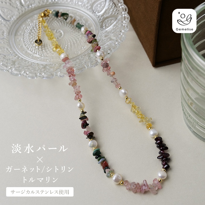 Gemelise ジェメリース 淡水パール×天然石(ガーネット/シトリン/トルマリン)ネックレス 950243