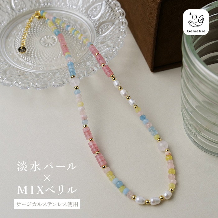 Gemelise ジェメリース 淡水パール×天然石(ミックスベリル/メノウ)ネックレス 950414