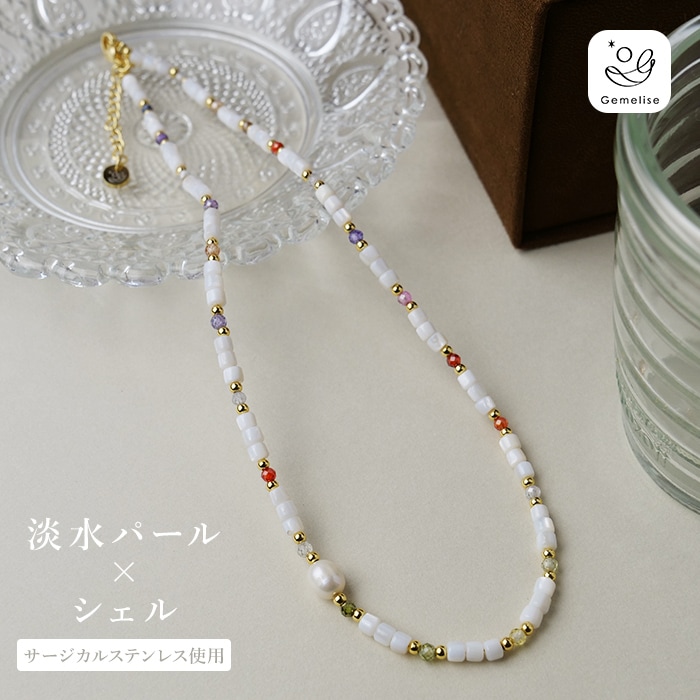 Gemelise ジェメリース 淡水パール×天然石(バロックパール/シェル)ネックレス 950241