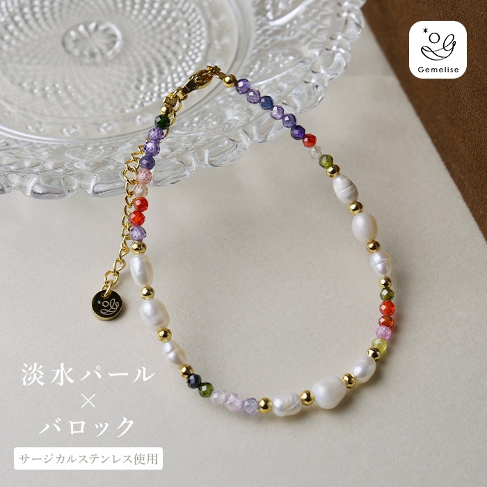 Gemelise ジェメリース 淡水パール(バロック)×ガラスビーズ ブレスレット 750385