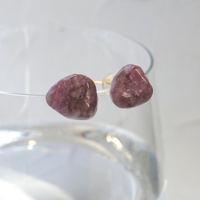 ルビー原石 スタッドピアス 天然石 パキスタン産 日本製 7月誕生石 ギフト プレゼント レディース アクセサリー ナチュラル フ...