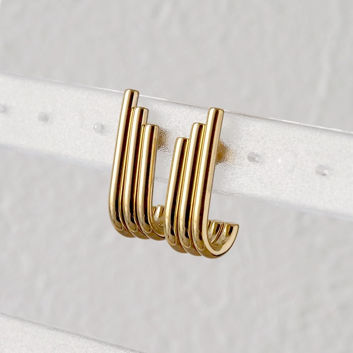 金属アレルギー対応 ステンレス ピアス 157. トリプルストリーム ピアス スタッド ゴールド 【メール便送料無料】