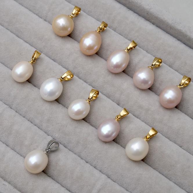 金属アレルギー対応 79.淡水パール 9mmx10mm ペンダントトップ ステンレス【日本製】 オーバル ドロップ 国内発送