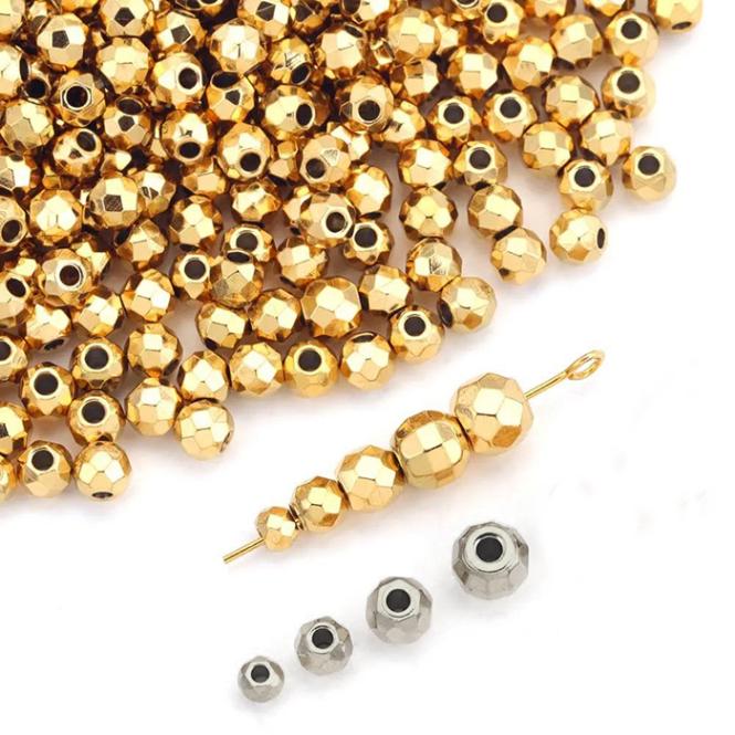 ステンレス(304) 金属アレルギー対応 カットビーズ【ゴールド/シルバーミラーカット】【30個売り】4サイズ