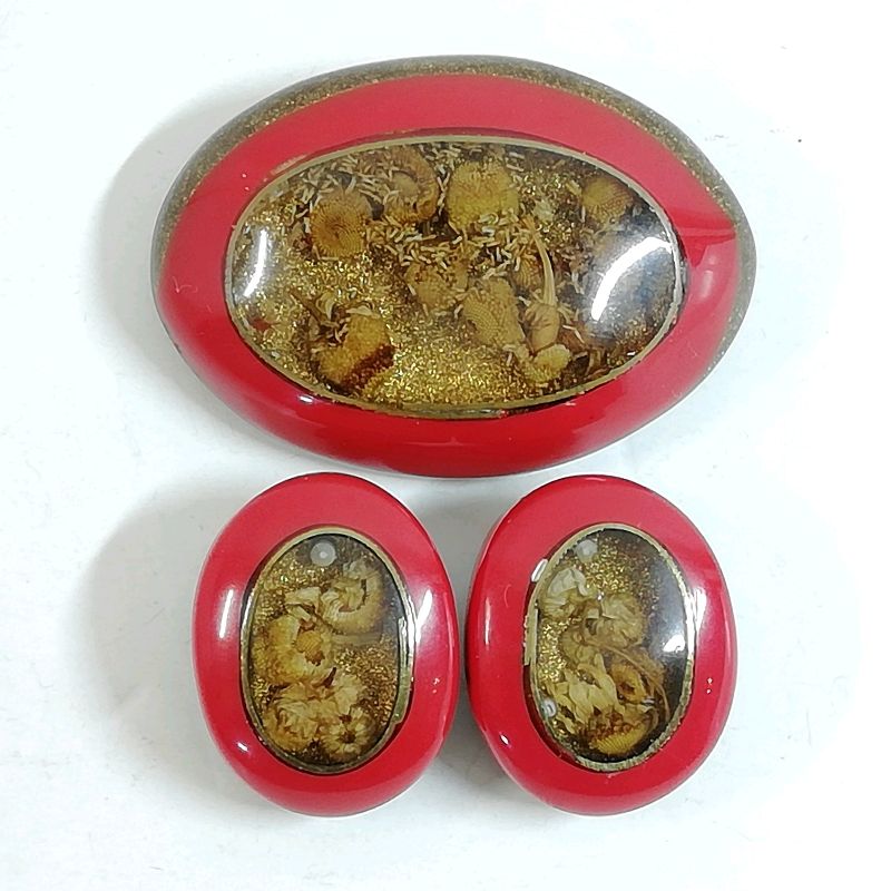 【中古】Pellini ドナテラペリーニ ブローチ&イヤリング ドライフラワー レッド