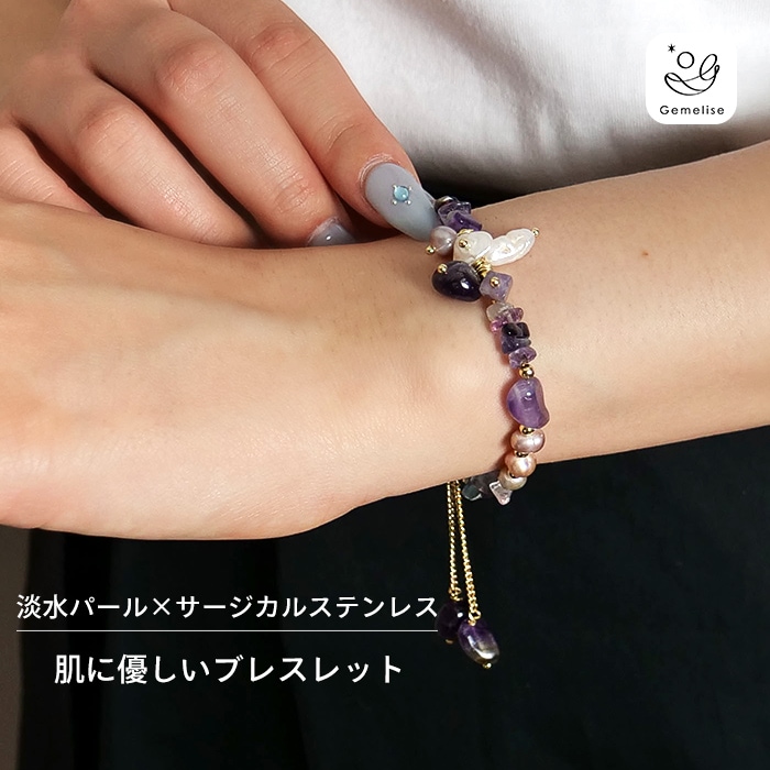 Gemelise ジェメリース 淡水パール×天然石 ブレスレット レディース サージカルステンレス SUS316 金属アレルギー配...