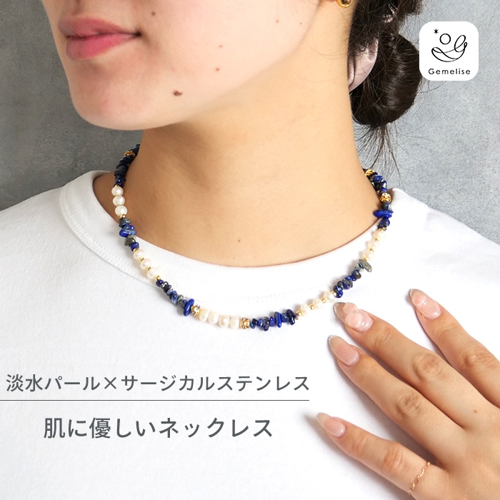 Gemelise ジェメリース 淡水パール×天然石 ネックレス レディース ショート サージカルステンレス SUS316 金属アレ...