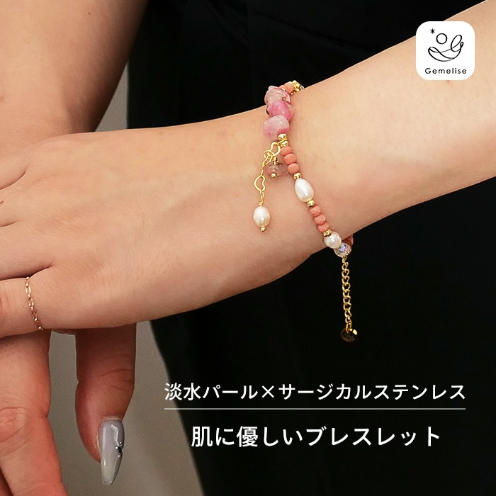 Gemelise ジェメリース 淡水パール×ステンレス 天然石 ブレスレット レディース サージカルステンレス SUS316 金属...