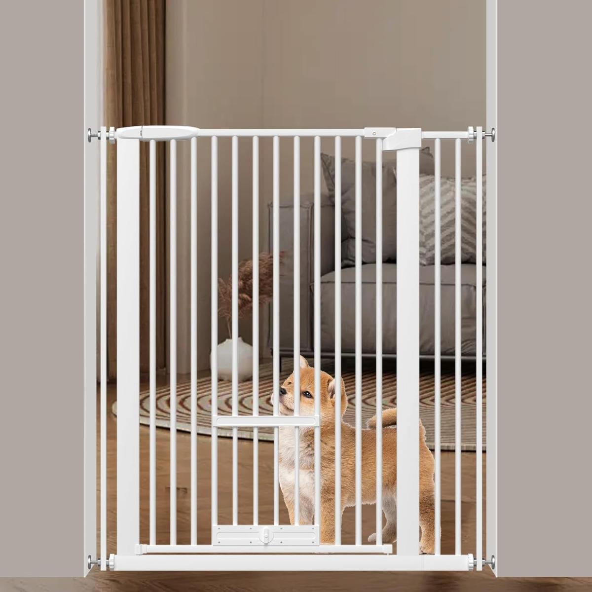 【中古】ペットゲート ペットドア付き 猫ドア付き 高さ103cm 猫ゲート 間隔3.5cm 過密フレーム付き ペットゲート ハイタ...