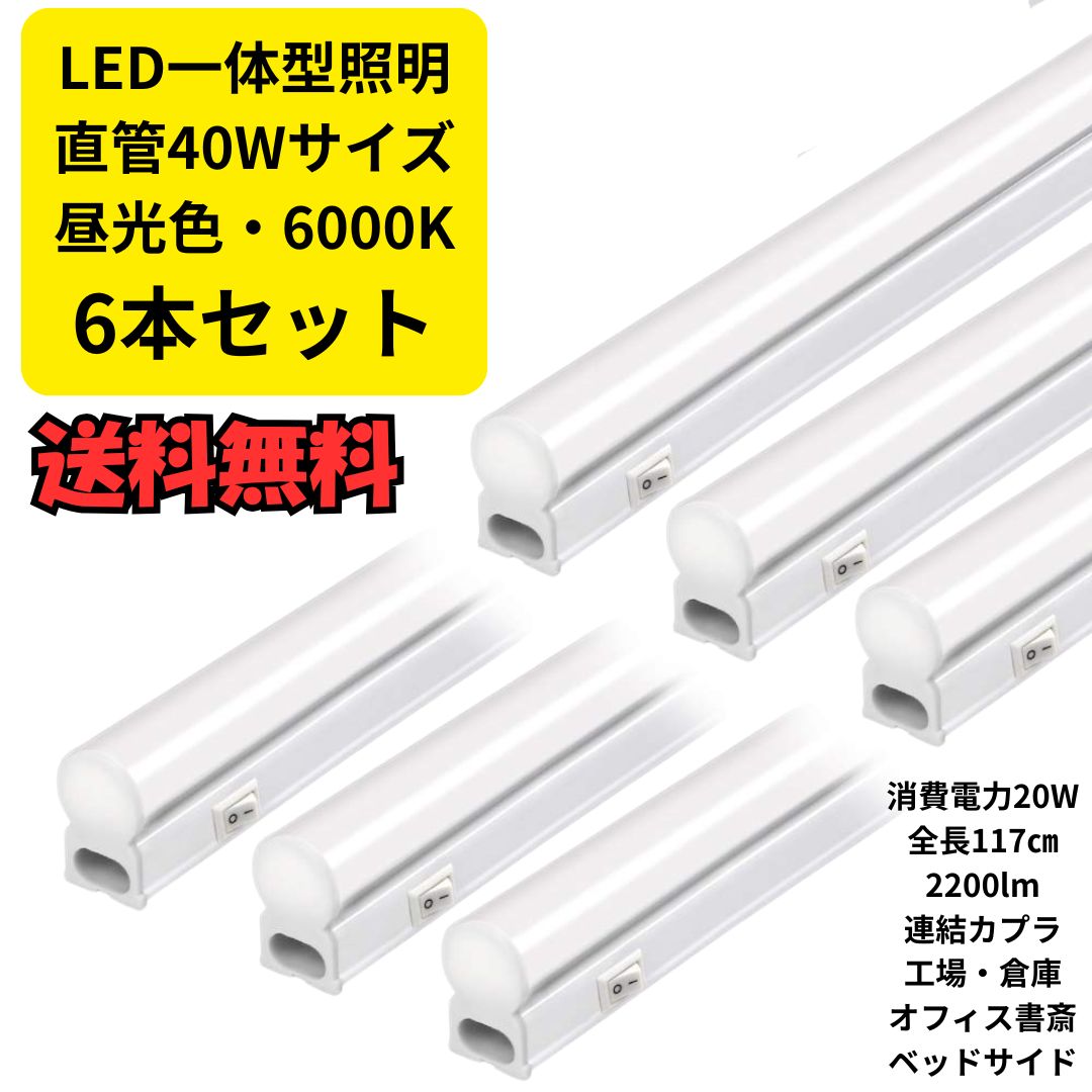 【新品】 スイッチ付器具一体型LED蛍光灯 40W形 長さ117cm 6000K昼光色 2200ルーメン 消費電力20W 配線工事...