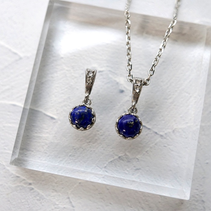 ラピスラズリ アフガニスタン産 ラウンド 約7mm ステンレス 金属アレルギー対応 ペンダント トップ ネックレス 日本製
