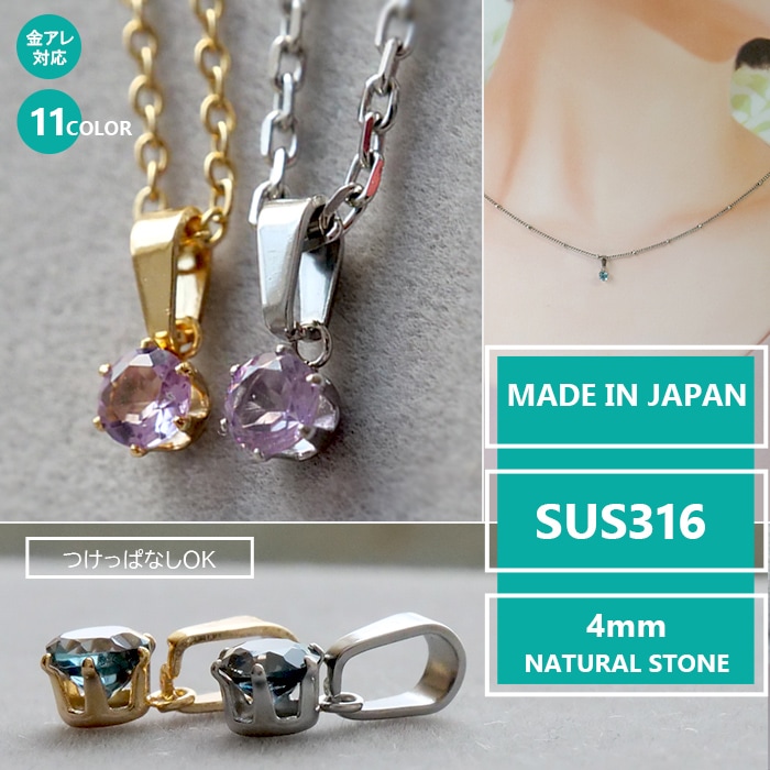 【送料無料】天然石 トップ 4mm サージカルステンレス製 SUS316 金属アレルギー対応 18Kコーティング スタッド 6爪ト...