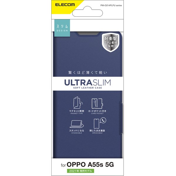 未使用品 エレコム OPPO A55s 5G 用 ウルトラスリム ソフトレザーケース 手帳型 紺 PM-O214PLFUNV【送料...