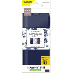 未使用品 エレコム SONY Xperia 5 III用 手帳型ソフトレザーケース 薄型 磁石付 フラワーズ ネイビー PM-X2...
