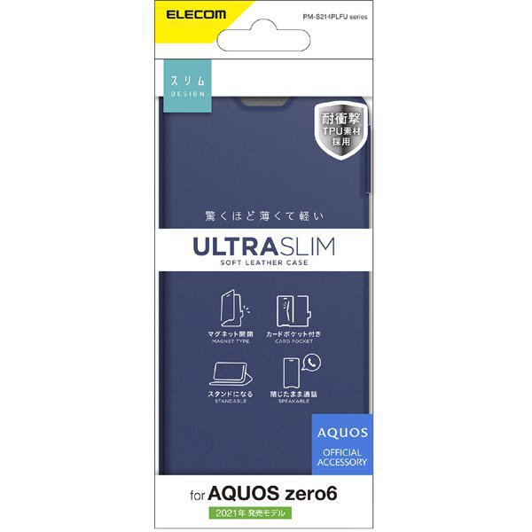 未使用品 エレコム AQUOS zero6 用 手帳型 ウルトラスリム 磁石付 ネイビー PM-S214PLFUNV【送料無料】【...