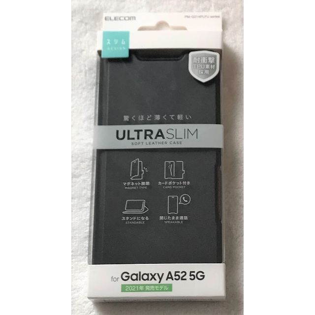 未使用品 エレコム Galaxy A52 5G用 ソフトレザーケース UltraSlim 磁石付き 手帳型 ブラック PM-G21...