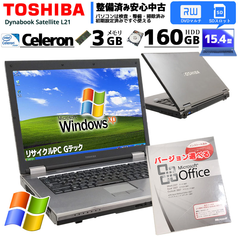 中古ノートパソコン Microsoft Office搭載 東芝 Dynabook Satellite L21 WindowsXP ...