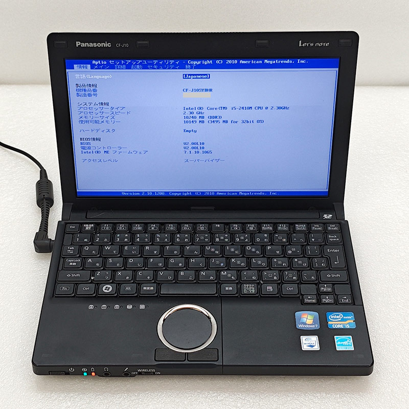 ジャンク品 Panasonic CF-J10SYBHR ジャンクPC ジャンクパソコン 保証無し OS無し ACアダプタ付属