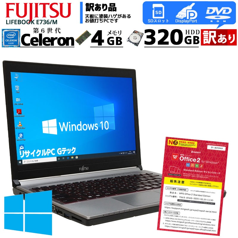 中古ノートパソコン 富士通 LIFEBOOK E736/M Windows10Pro Celeron 3955U メモリ4GB H...