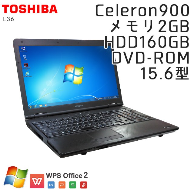 中古ノートパソコン 東芝 Dynabook L36 Windows7 Celeron-2.2Ghz メモリ2GB HDD160GB...