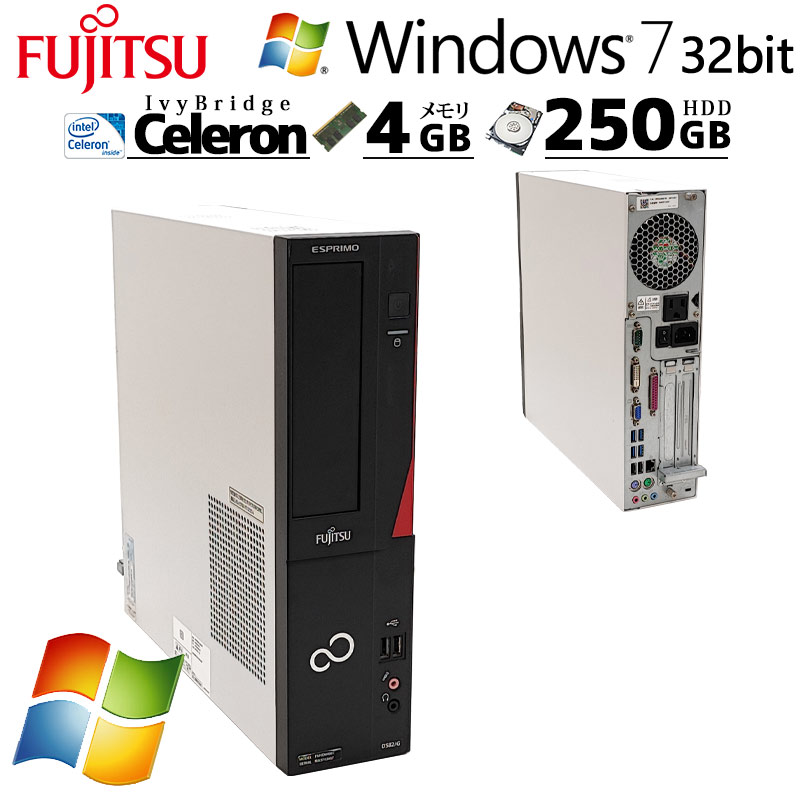 Win7 32bit 中古デスクトップ 富士通 ESPRIMO D582/G Windows7 Pro Celeron G1610...