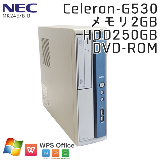 中古パソコンNEC Mate MK24E/B-D Windows7 Celeron-2.4Ghz メモリ2GB HDD250GB ...