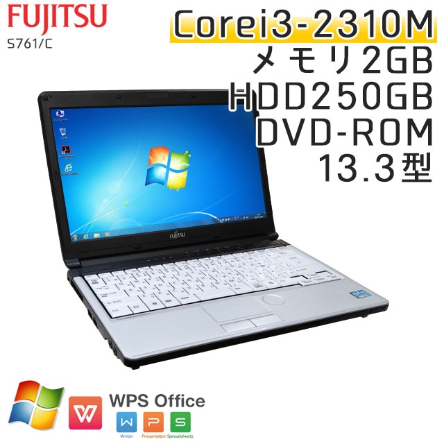 中古ノートパソコン 富士通 LIFEBOOK S761/C Windows7 Corei3-2.1Ghz メモリ2GB HDD25...