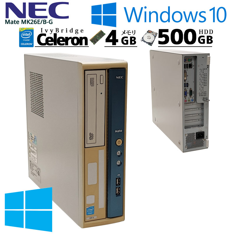 中古パソコン NEC Mate MK26E/B-G Windows10 Celeron G1610 メモリ4GB HDD500GB...