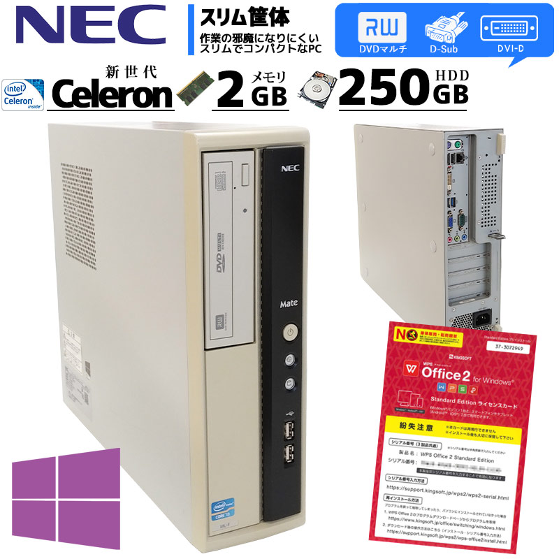 中古パソコン Windows7 NEC Mate MK26E/A-C CeleronE3400 メモリ2GB HDD250GB D...