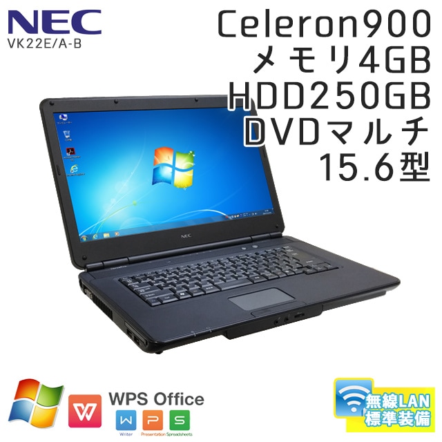 中古ノートパソコン Windows7 NEC VersaPro VK22E/A-B Celeron2.2Ghz メモリ2GB HD...