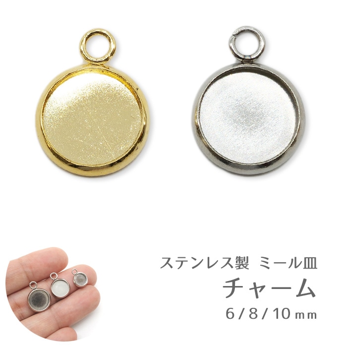 79. ステンレス ミール皿 【チャーム 丸】10個 6mm 8mm 10mm レジン枠 小さめ 小さい ゴールド シルバー カン...