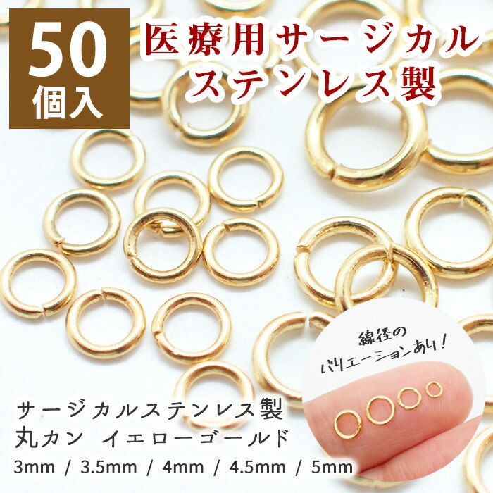 サージカル ステンレス製 丸カン ゴールド【サイズ10種類】【50個売り】316 サージカルステンレス 金属アレルギー対応 SUS...
