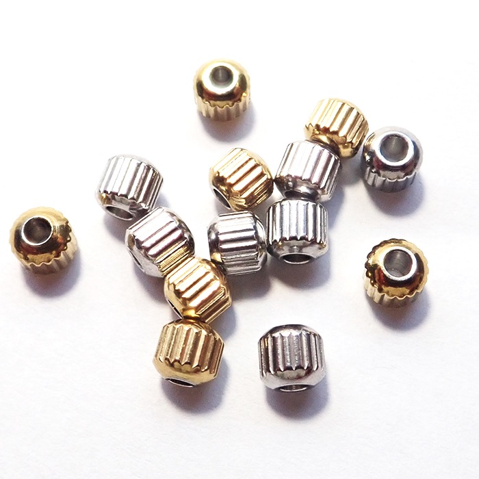 ステンレス(304)【10個売り】金属アレルギー対応 ビーズ 【ボール】スジ入り3.5*3.8mm メタルパーツ