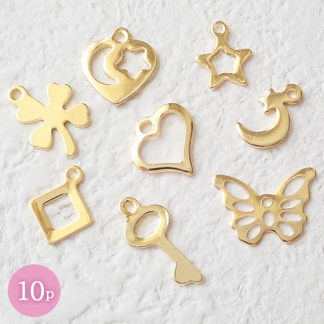 ステンレス チャーム 【10個】【43. メタルプレートチャーム ゴールド 】 スター ムーン ハート キー クローバー スクエア...