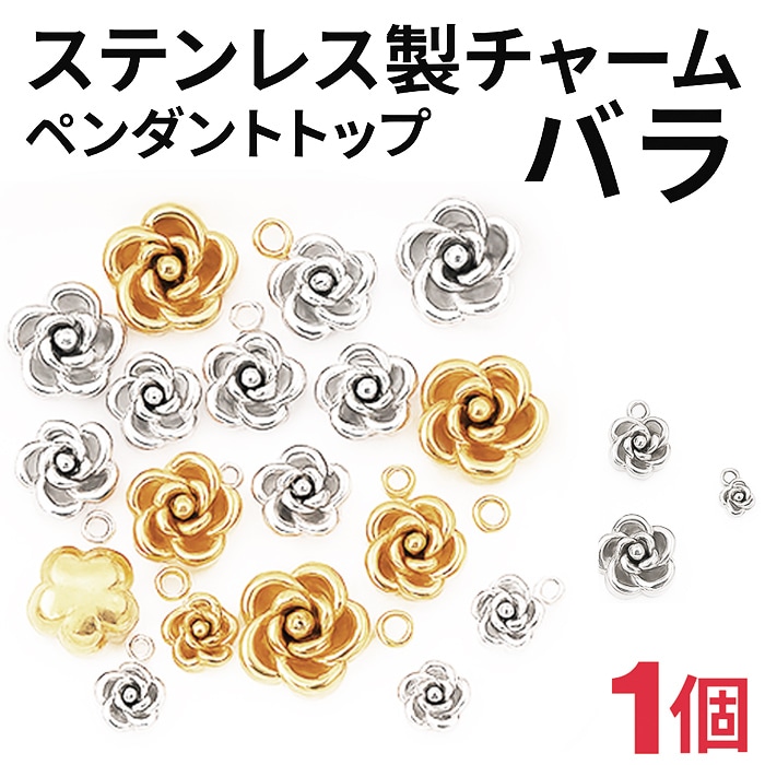ステンレス製チャーム ペンダントトップ バラ ゴールド シルバー 1個 金属アレルギー対応 ハンドメイド資材