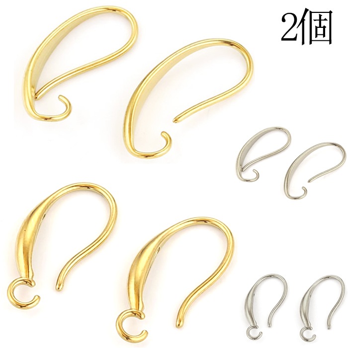 サージステンレス【 SUS316】フックピアスパーツ 2個(1ペア)調整可能 ゴールド シルバー 金属アレルギー