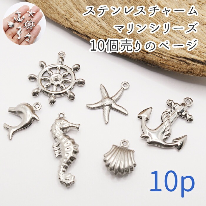 ステンレス マリンチャーム 10個 シルバー 金属アレルギー対応 チャーム ハンドメイド パーツ 材料