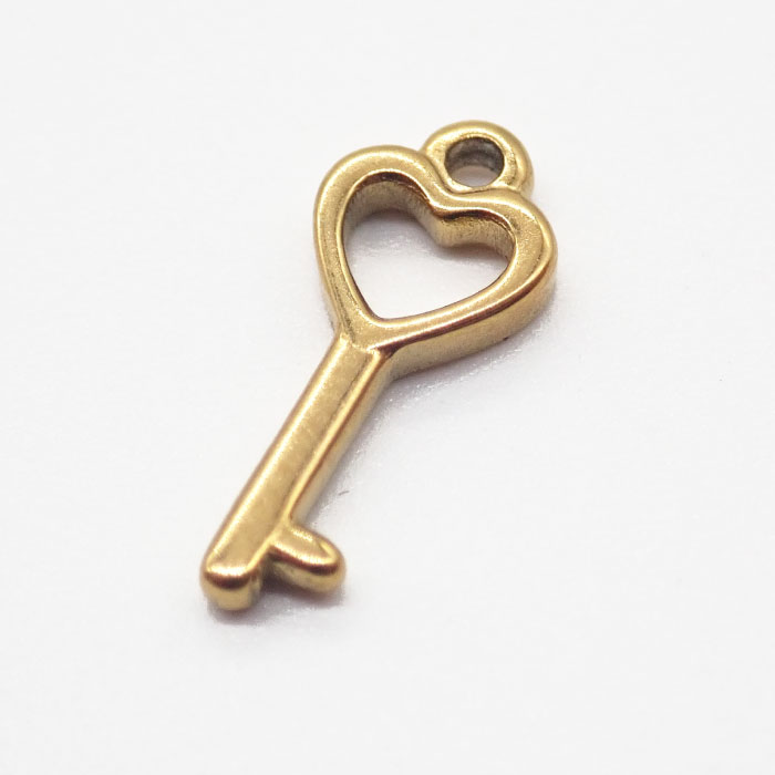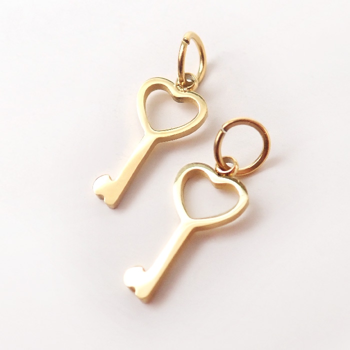 ステンレス 【SUS304】 チャーム 鍵 ハート ゴールド ハンドメイド パーツ 丸カン付き 金属アレルギー対応