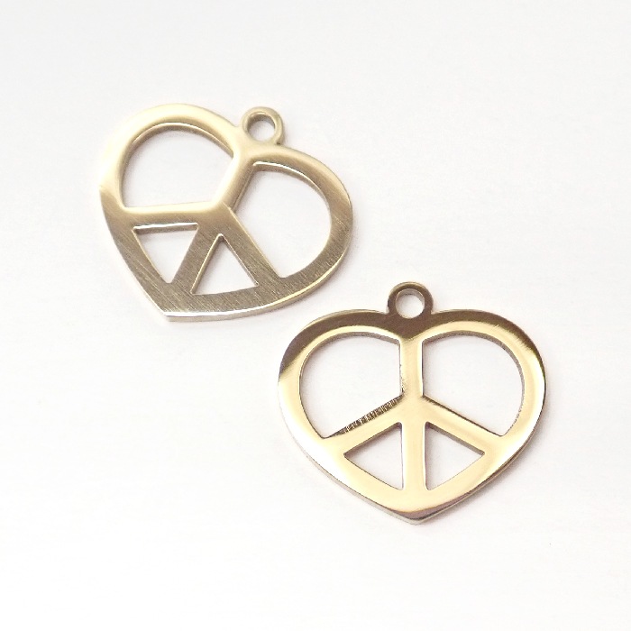 ステンレス 【SUS304】 チャーム ハート ピースマーク ゴールド ハンドメイド 金属アレルギー対応