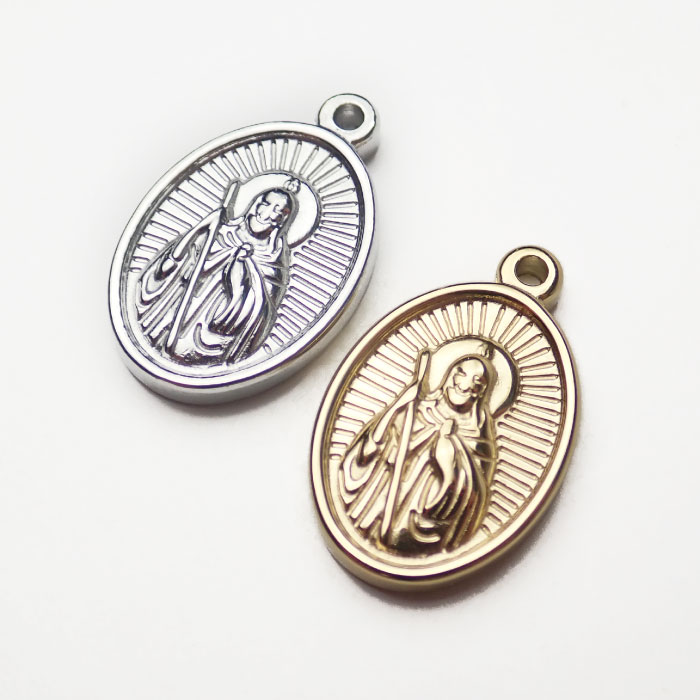 ステンレス 【SUS304】製 メダイ ゴールド シルバー 聖人 チャーム 約23×15mm 金属アレルギー対応 パーツ