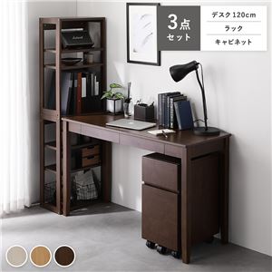 Office168天然木 デスクシリーズ 3点セット 〔 デスク 120cm幅 + ラック + キャビネット 〕 ブラウン デスク...