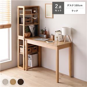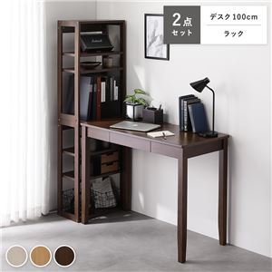 Office168天然木 デスクシリーズ 2点セット 〔 デスク 100cm幅 + ラック 〕 ブラウン デスクセット 学習机 引...