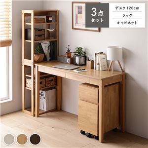 Office168天然木 デスクシリーズ 3点セット 〔 デスク 120cm幅 + ラック + キャビネット 〕 ナチュラル デス...