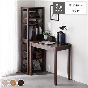 Office168天然木 デスクシリーズ 2点セット 〔 デスク 80cm幅 + ラック 〕 ブラウン デスクセット 学習机 引出...