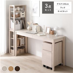 Office168天然木 デスクシリーズ 3点セット 〔 デスク 140cm幅 + ラック + キャビネット 〕 ホワイト デスク...
